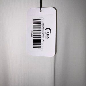 ZYIA Active long sleeve shirt in crisp white. Ideal for fitness or everyday style.