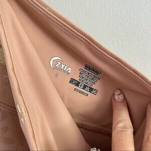 Zyia | Women’s Active Peach & Gold Metallic Leopard Print Leggings Tan Shimmer 4