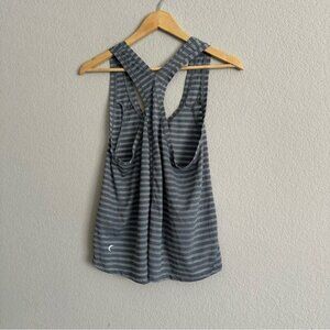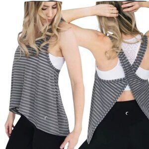 Zyia Womens Nimbus Tie-Back Tank Top Gray Mesh Stripe Split Open Tie Back S