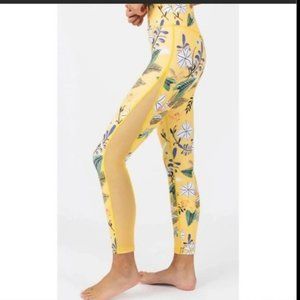 Zyia Yellow Floral reflective light n tight leggings 4 7/8 24" high rise