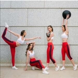 Zyia active red royalty stripe workout leggings. Red with purple stripe.
