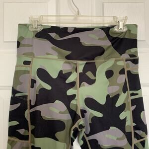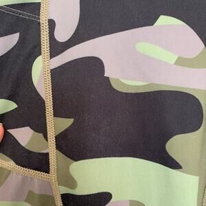 Green, black and gray camo with side pockets. Some spots of minor fading or pilling; otherwise good used condition!
