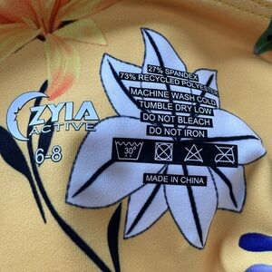 Zyia reflective Light n Tight leggings Yellow floral print Mesh detail Size 6-8