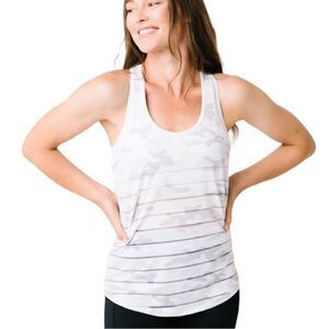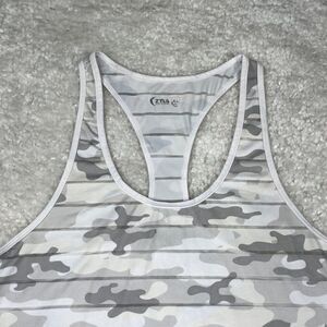 Zyia Active Havana Camo Tank. Gently preowned in good condition. No stains or holes. Light, barely there feel. Slightly scooped feminine shape. Racerback style layers perfectly with most sports bra.