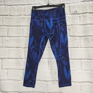 Zyia Active Women’s Cropped Dark Blue Leaf Print Leggings Size 4 Athleisure Yoga