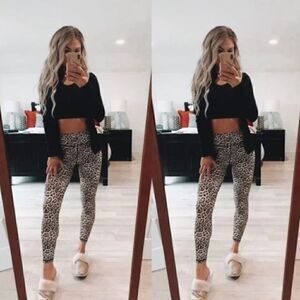 Tan and black leopard print High waisted active leggings with Scrunch detail on butt. Size 6-8. Great preowned condition.