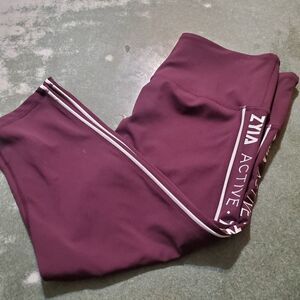Zyia plum logo stripe light n tight hi rise crop 17" sz 12 in good used condition with minimal wear.