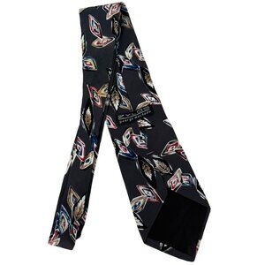 Zylos George Machado Mens Tie Italian Silk Black Leaf Diamond Pattern