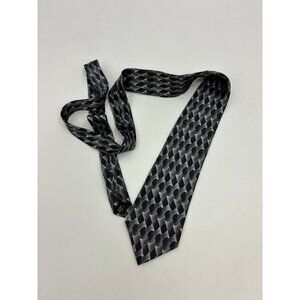 Zylos Mens Silk Tie Black Gray Geometric Pattern Classic Business Dress Necktie