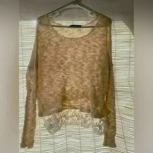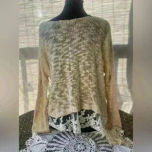 Zyra Loose Knit Lace Bottom Boho Sweater sz Small