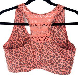 Zyria Active Coral Leopard Print Bomber Bra Mesh Back Women's Size Large