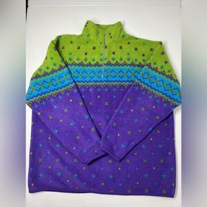 Zzapp Vintage Sweater Womens Medium Yellow Geometric Pattern Fleece Sz L 1/4 Zip