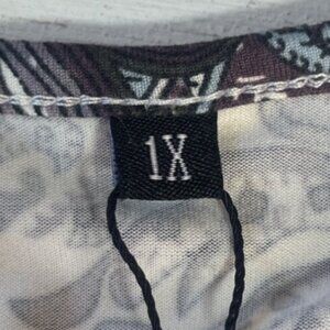 a Jesdani Paisley Print Shirt Womens 1X Blue White New Short Sleeve