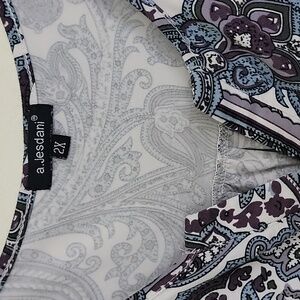 a. Jesdani Purple, Blue & White Paisley Print Peasant Short Sleeve Womens Top 2X