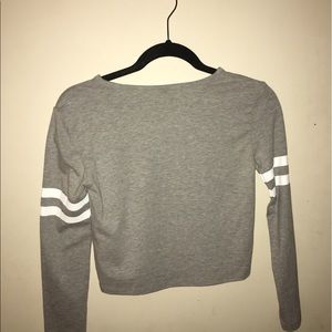 *WORN ONCE* not too short but fairly cropped. gray with whote strips on sleeves.
