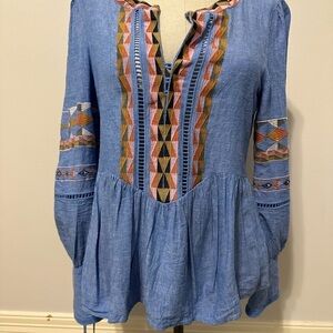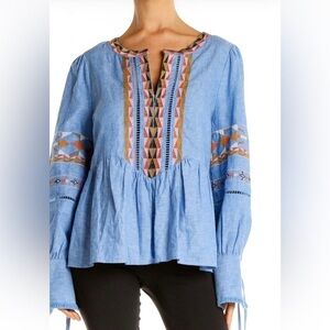 a loves a Blue Embroidered Bohemian Linen Top size medium Western Rodeo Country