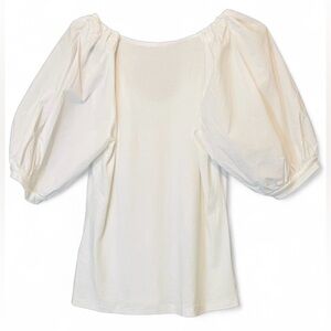 a loves a Puff-Sleeve Paneled Rib-Knit T-Shirt by White, Size Large