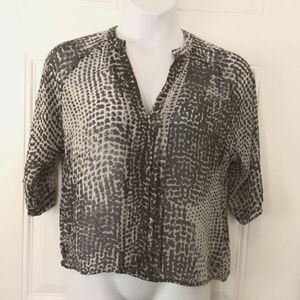 a. n. a charcoal gray and off white animal print 3/4 sleeve semi sheer blouse