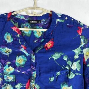 a new approach ANA Top Womens Plus 2X Blue Green Pink Floral Lightweight Casual