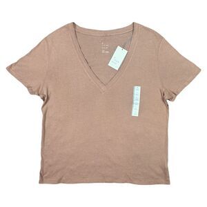 a new day Beige V-Neck Short Sleeve Tee - Size Large