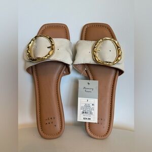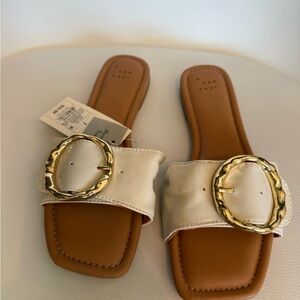 ☑️a new day Bennie Women's Cream Slide Sandals with Gold Buckle NWT