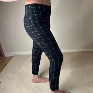 These black leggings from a new day feature a striking windowpane pattern, offering a modern twist on a classic design. The high-waisted, form-fitting silhouette ensures a flattering fit, while the stretchy fabric provides comfort and ease of movement. Perfect for both casual outings and stylish gatherings, these leggings are a versatile addition to any wardrobe.