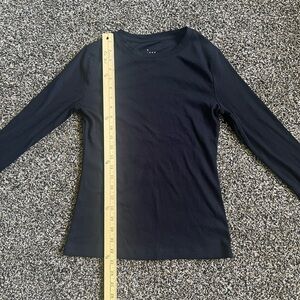 Sleek black blouse with long sleeves. Perfect for layering or standalone wear. 58% cotton,39% modal, 3% spandex