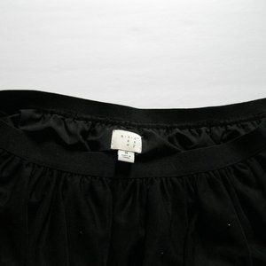 a new day brand black, floaty midi skirt. Mesh outer layer with rhinestones, satiny black underskirt. Elastic waistband. Add some sparkle to your style with this mid-calf skirt!