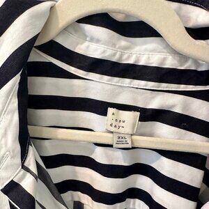 Chic striped dress. Button-up front. Short sleeves. Relaxed fit.