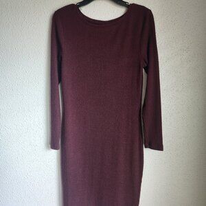 a new day Burgundy Long Sleeve Sweater Dress M Below Knee 41" Shoulder to Bottom