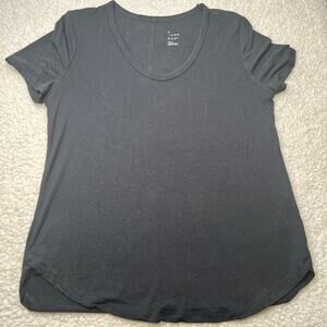 a new day Gray Scoop Neck Tee Small. Preowned and in great condition. Tee has scoop neck with rounded hem. Please see all photos. Approx measurements in pictures.