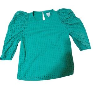 a new day Green Eyelet Puff Sleeve Blouse