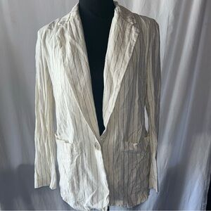 a new day Ivory and Charcoal Pinstripe Blazer pine striped linen blend