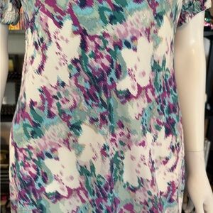 Chic floral maxi dress with vibrant colors. Features a flattering V-neck and short puff sleeves. Ideal for any occasion. Layflat Measurements: pit to pit 16”, waist 13.5”, size small