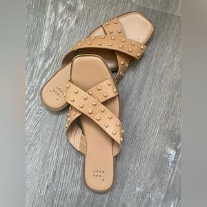 a new day Nude Studded Criss Cross Slide Sandals Size 7 Like New Condition