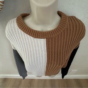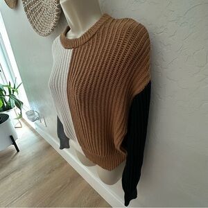 a new day Oversized Color-block (Brown,Cream, Black) Knit Ribbed Sweater. XS