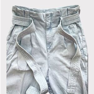 a new day Paperbag High Waist Tapered Jeans With Belt Light Blue Wash Sz 12