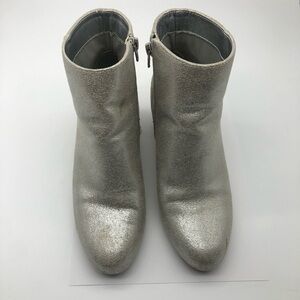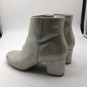 Elevate your style with these stunning silver heeled boots from a new day. Featuring a sleek ankle design and a comfortable chunky heel, these boots are perfect for adding a touch of glamour to any outfit. The smooth, metallic finish and pull-on style make them both fashionable and easy to wear.