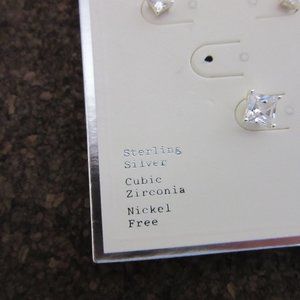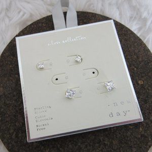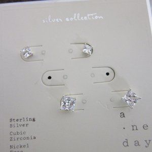 a new day Stud Earrings Sterling Silver Cubic Zirconia Square Cut Stones 2 Pairs
