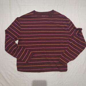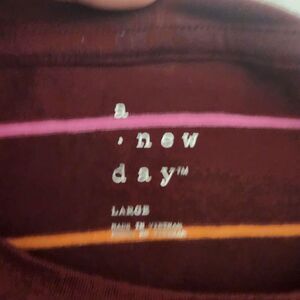 a new day T Shirt Striped Long Sleeve Burgundy Basic Women's Size Large