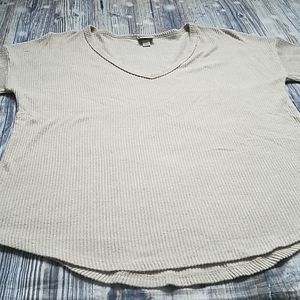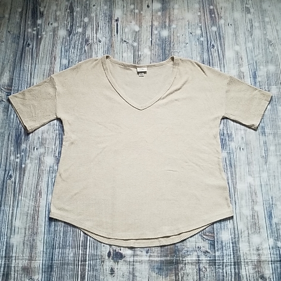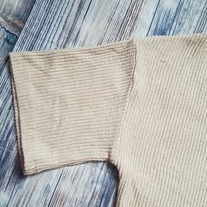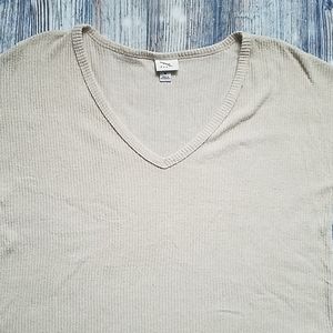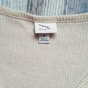 a new day top with 3/4 sleeve in the color of a cream/tan. A nice thick top that will look good with jeans or dress pants. Size M measurements are about armpit-armpit 22 inches & Top-bottom about 25 inches I also measured the sleeve from tip to armpit about 4 inches. In excellent condition !