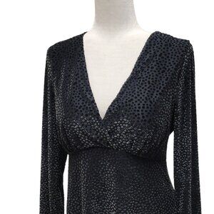 Long sleeves with elegant V-neck. Fit and flare style. Lined. Stretchy.