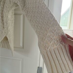Elegant cream turtleneck sweater. Soft knit texture. Ideal for layering.