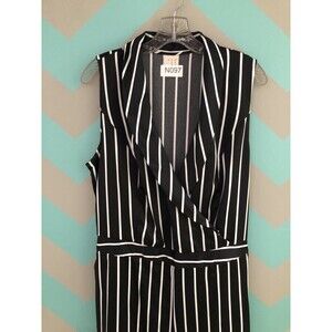 a new day Women’s XXL pinstriped Romper Jumpsuit belt black white 304