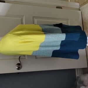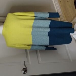 a new day color block open sweater cardigan duster size large yellow blue soft