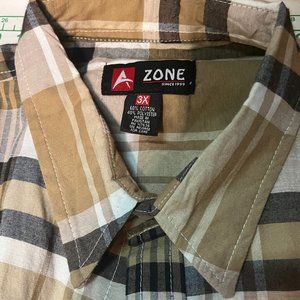 a zone mens plaid brown polyester blend stretch button shirt size 3x