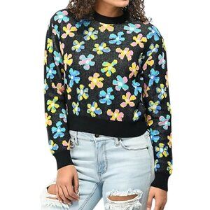 Alab funky maximalist floral print pullover crew neck cropped sweater
