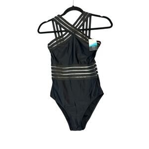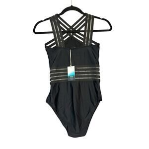 aava NWT Imogen Cross Over One Piece Swimsuit Size S Black Striped Bathing Suit