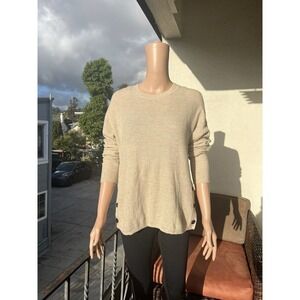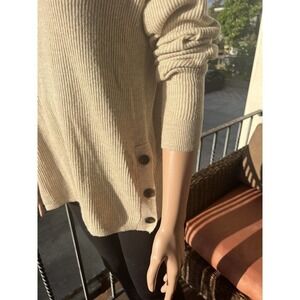Style: Long sleeve, Knit sweater with button details on the bottom sides.