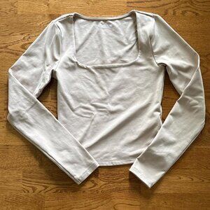 abercrombie seamless long sleeve tan beige xs soft fitted square neck shirt top
